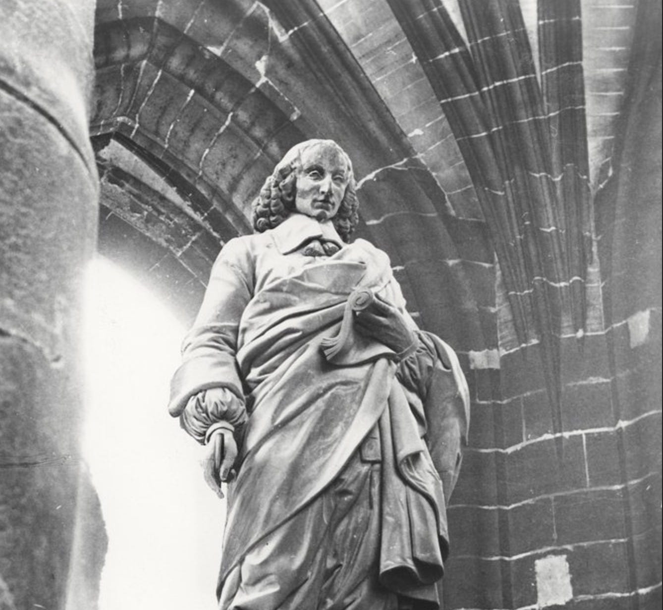 Blaise Pascal, French polymath: mathematician, inventor, philosopher, moralist and theologian. For two years in 1647 and ’48 he used the tower of the then still-extant church for some of the earliest experiments in falling bodies and air pressure.